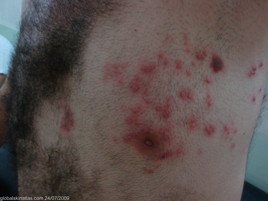 Description: Typical zosteriform rash.